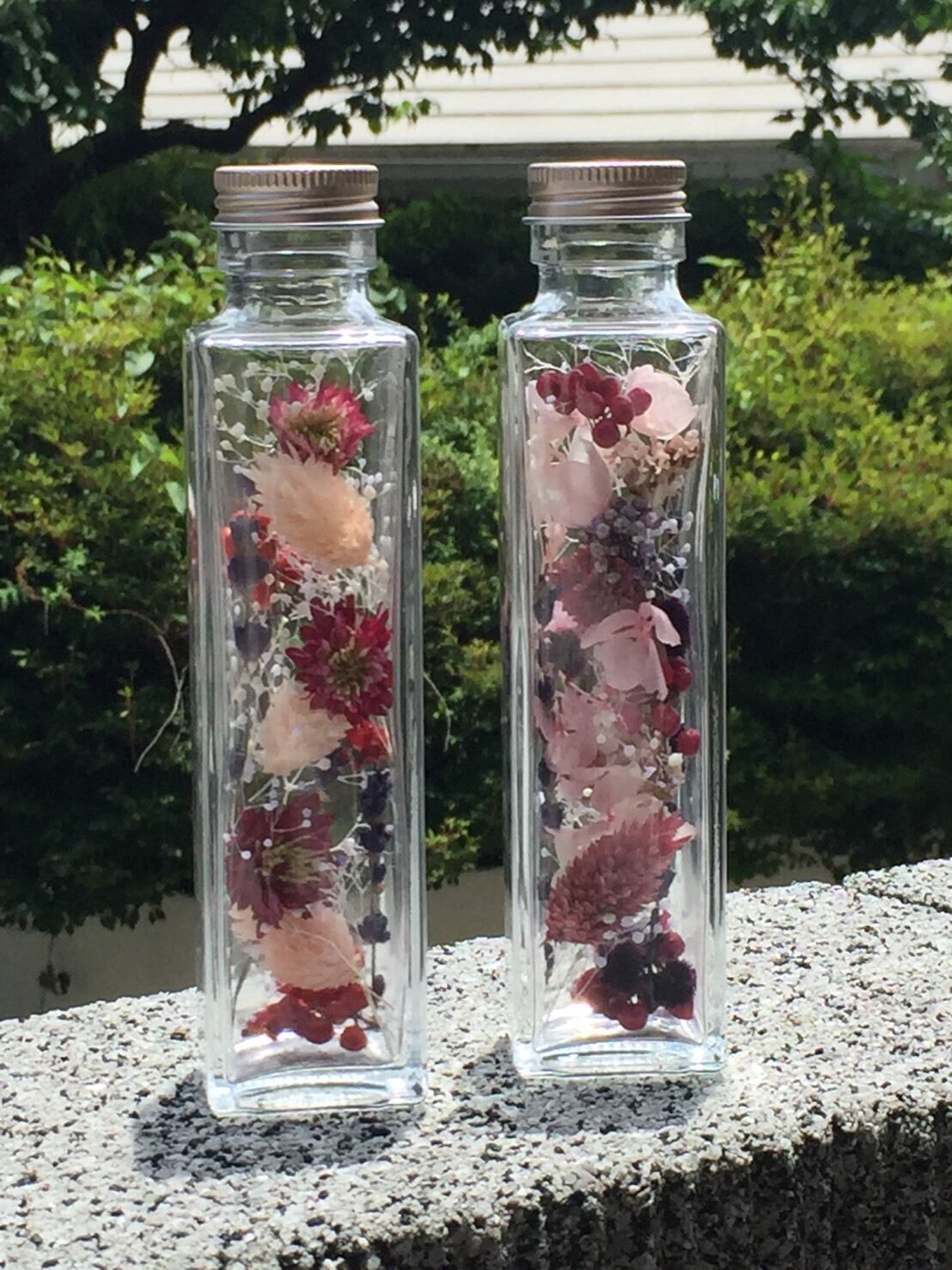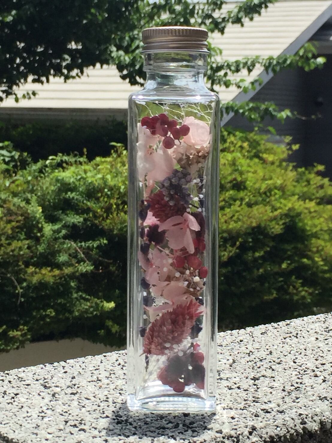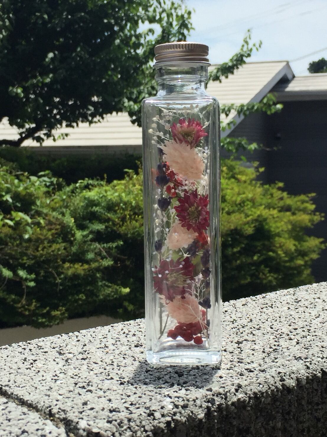 (お花をお好きな位置にガラスを動かして移動させるのもハーバリウムの1つの楽しみなので、自分だけのオリジナルのハーバリウムを作ってみてください。)
