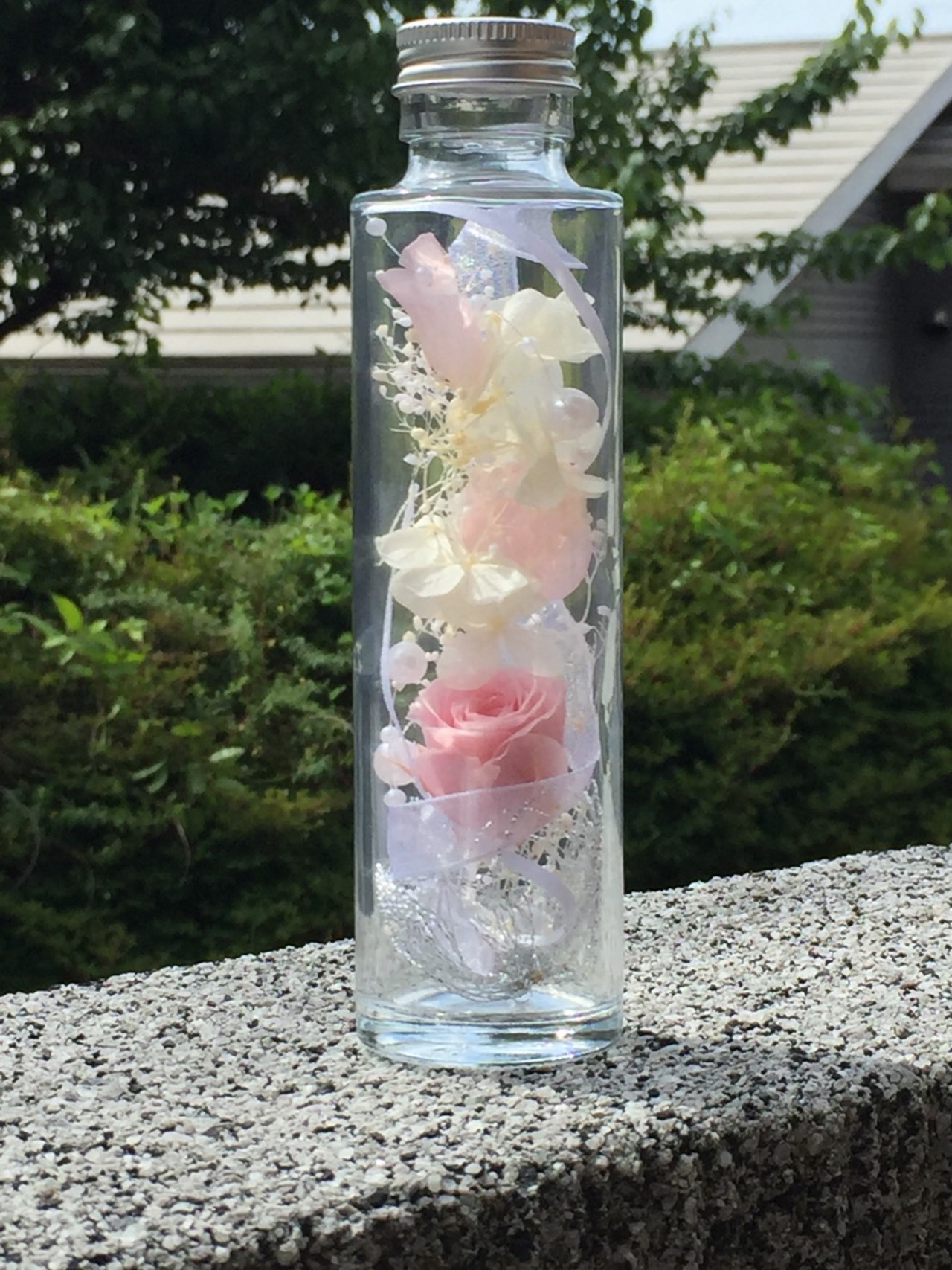 (お花をお好きな位置にガラスを動かして移動させるのもハーバリウムの1つの楽しみなので、自分だけのオリジナルのハーバリウムを作ってみてください。)