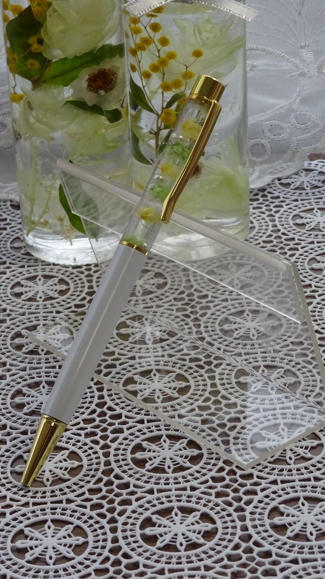 ハーバリウム ボールペン 白基調